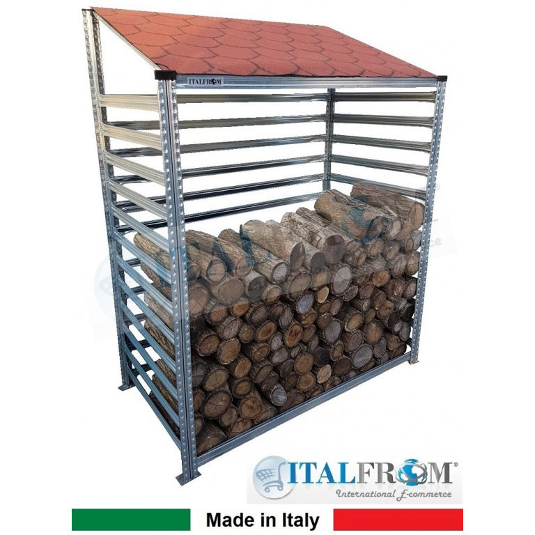 Italfrom L128 X D80 X H250 cm Galvanized Steel Modular Self-Supporting Woodshed Initial Module with Green Roof for Storage