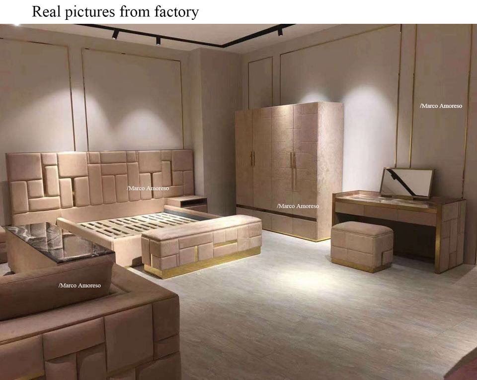 Italian Brand Modern Wooden Material Luxury Wardrobe with Gold Stainless Steel Deco Bedroom Furniture 6 Door Leather Wardrobe