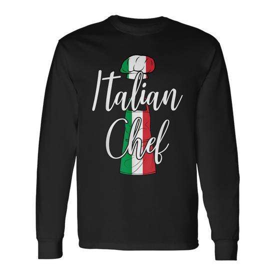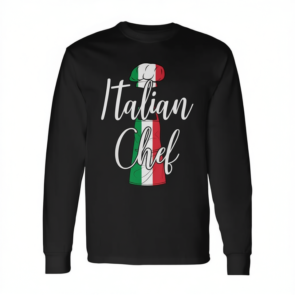 T-shirt a maniche lunghe da chef italiano con design della bandiera, divertente tema culinario