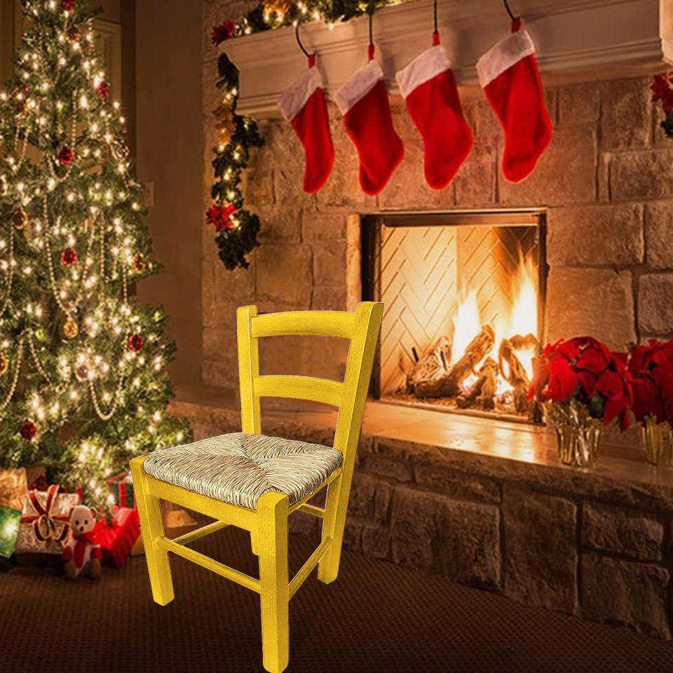 Italian Classic Style Beech Wood Chair with Woven Straw Seat 30x24x52 cm Yellow for Living Room