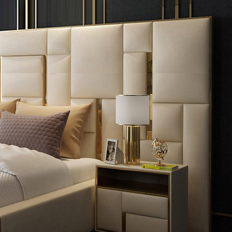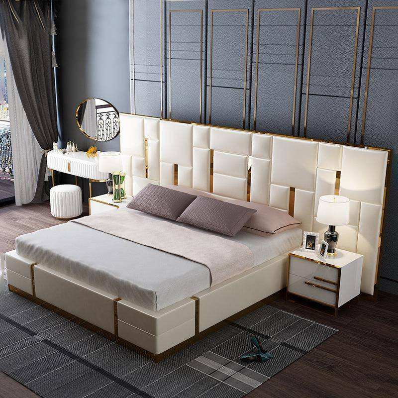 Letto Matrimoniale di Lusso in Pelle Design Italiano, Set di Mobili per Camera da Letto, Struttura in Legno, Letto Imbottito Moderno per Camera Padronale