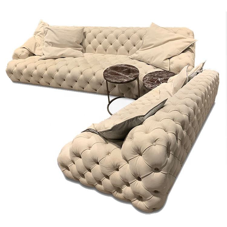 Design italiano in pelle bianca soggiorno tufted edward divano set personalizzato post moderno chesterfield divano in tessuto pulsante divani