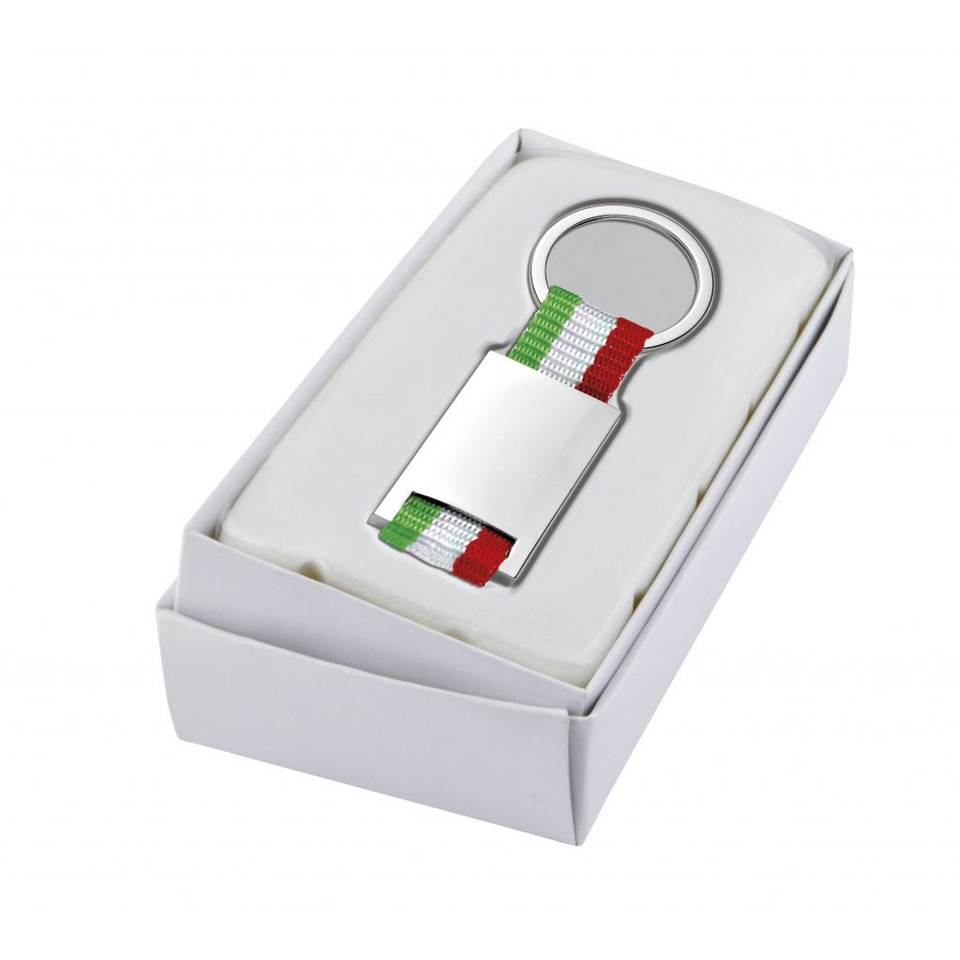 Portachiavi in nylon con bandiera italiana, anello in metallo e placca rettangolare per uso promozionale