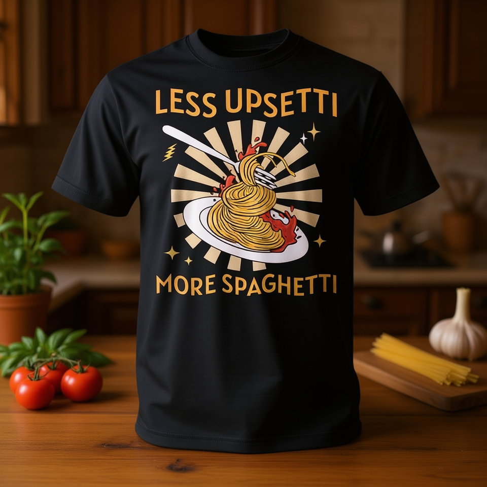 Italian Food Pasta T-Shirt for Girls and Boys Less Upsetti More Spaghetti Promotional Product