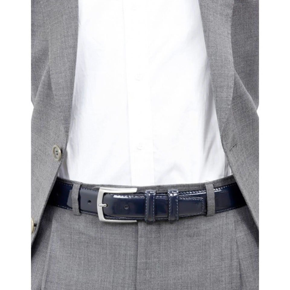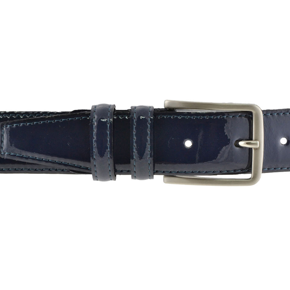 Italian Handmade Polished Varnished Blue Calfskin Elegant Genuine Leather Belt Height 3.5cm/1.38in for Export 6 Pcs in a Box