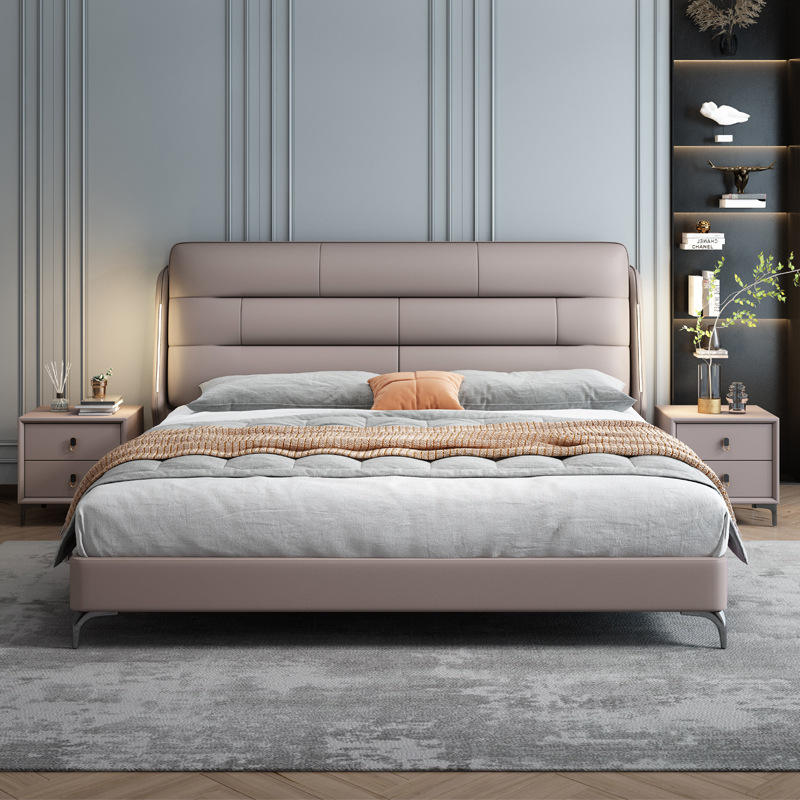 Fascia alta italiana grande testiera letto matrimoniale telaio in pelle letti nuovo Design camera da letto mobili di lusso moderno letto King Size