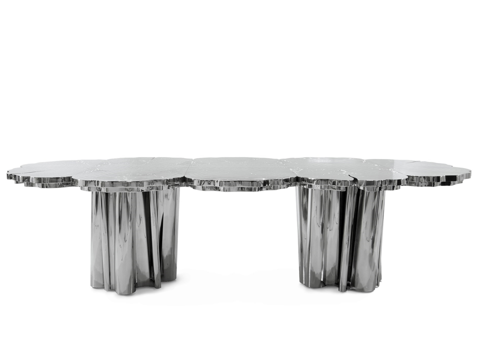 Tavolo da Pranzo Irregolare in Acciaio Inossidabile Puro di Alta Qualità Italiano, Tavolo Barocco di Lusso per Ville e Appartamenti