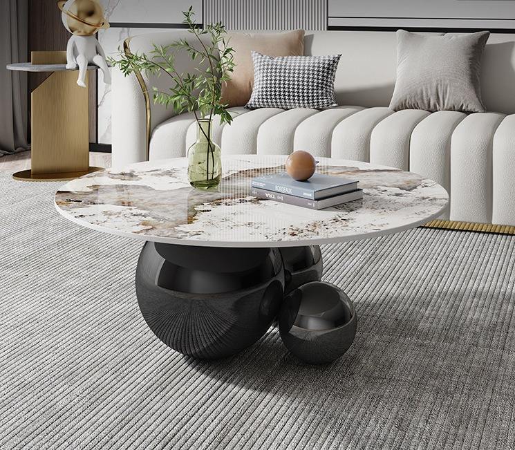 Tavolino da Caffè Rotondo Moderno di Lusso Leggero Italiano di Alta Gamma per Soggiorno Piccolo con Piano in Marmo Regolabile e Base in Acciaio Inossidabile