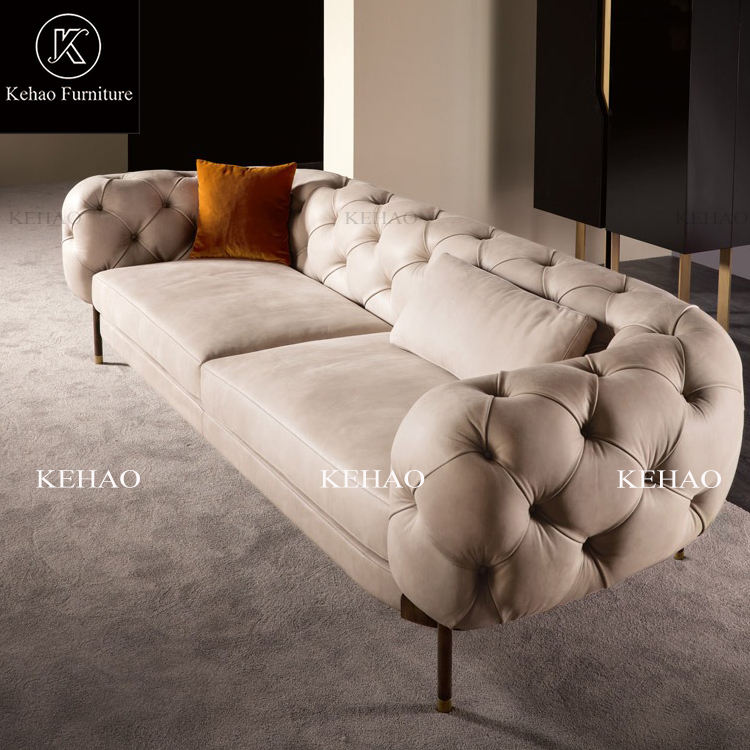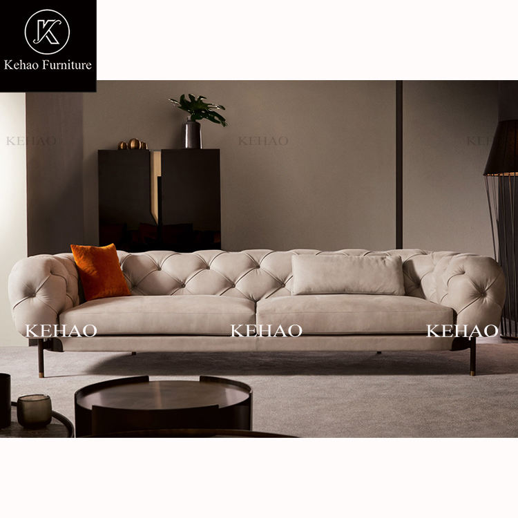 Italian Living Room Sofa Set Customized Postmodern Chesterfield Fabric Buttons Three - Seater Synthetic Leather Home Furnishing