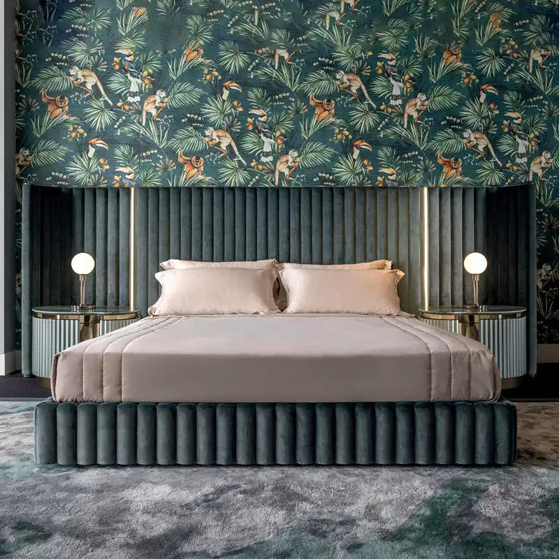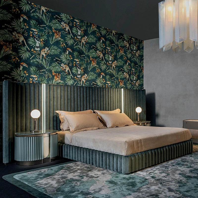 Italian Luxury Leather Bedroom king Size Bed with Wide Headboard Green Double Bed Modern Bedroom Furniture for Villa