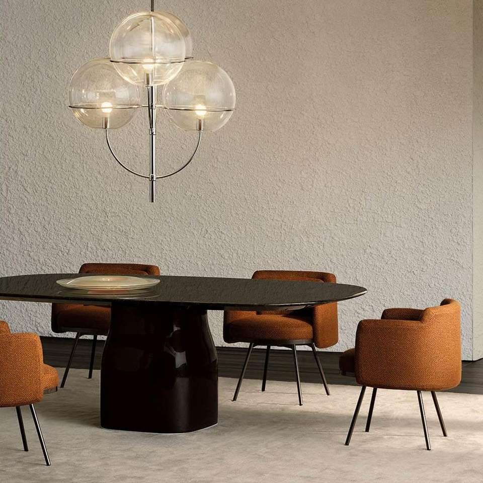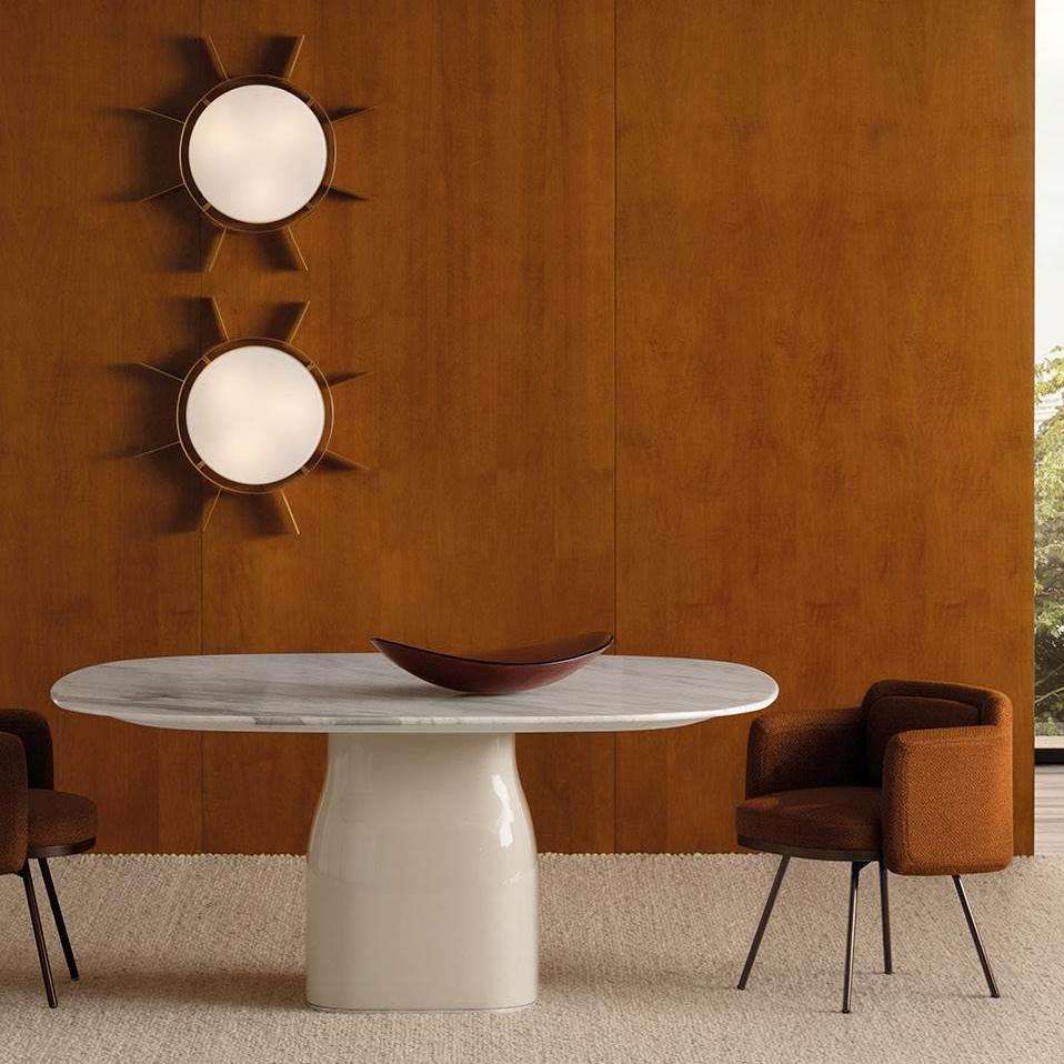 Set da Pranzo di Lusso in Marmo Italiano, Tavolo Ovale per 4 Persone, Stabile, per Villa, Hotel, Arredamento Moderno di Alta Gamma