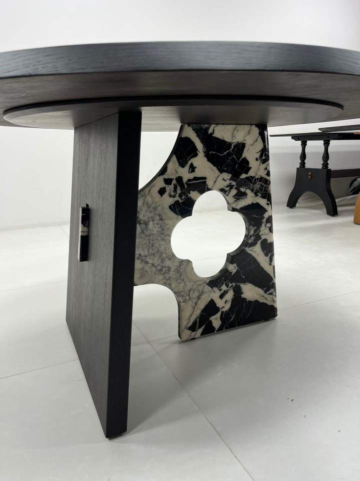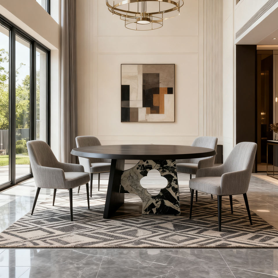 Tavolo da Pranzo di Lusso in Marmo Italiano, Nero Rosa Moderno, Solido, 6 Posti, Montaggio Richiesto, per Casa, Hotel, Soggiorno