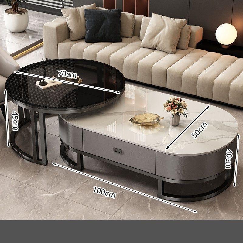 Tavolo da caffè ovale moderno di lusso italiano con piastra di roccia Set in metallo mobili per la casa per soggiorno on-line servizio di tè