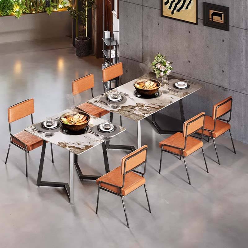 Italian Luxury Rock Slab Modern Hot Pot Square Table Chair Combination High-End Dining for Commercial Café Bar and Restaurants