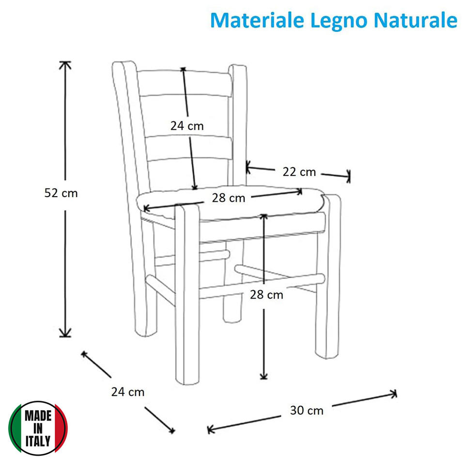 Sedia per adulti e bambini con Design classico realizzato in Italia 30x24x52cm in legno di faggio con seduta in paglia intrecciata