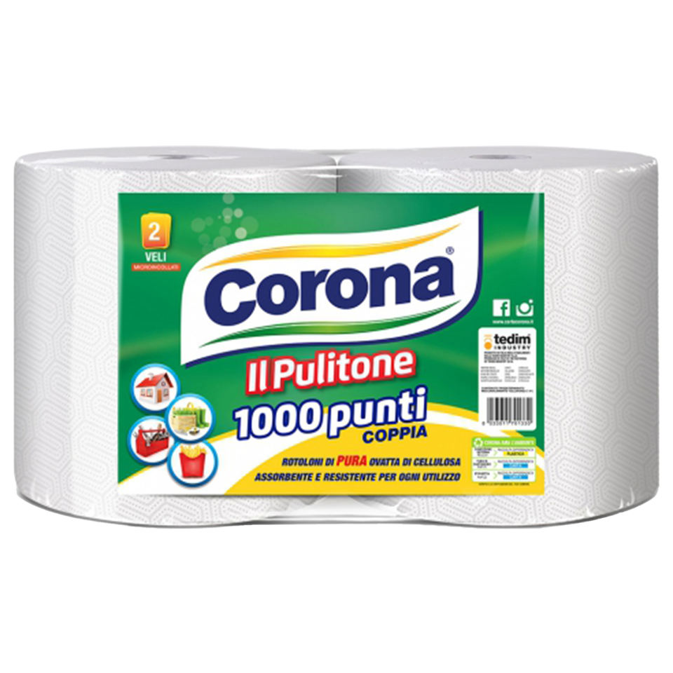 Italian-Made Corona White Kitchen Paper Mop Rolls 1000 Points 2-Ply Resistant Pair Set
