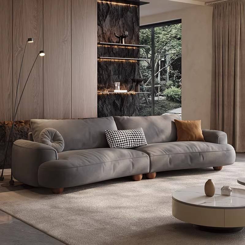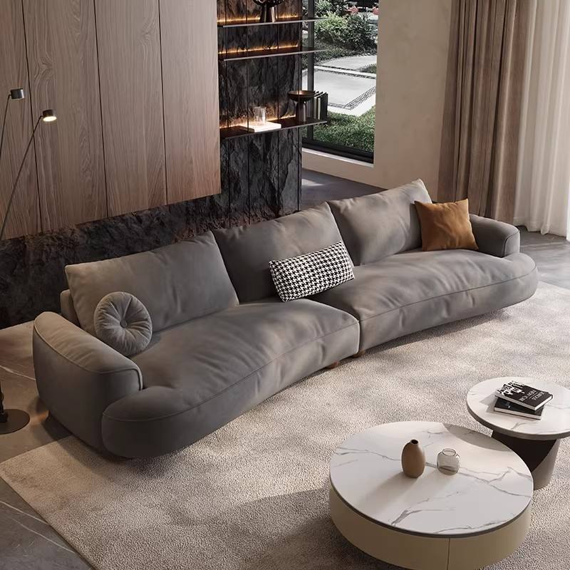 Italian Minimalist Fabric Sofa Small Space Straight 3/4-Seater Frosted Fabric Irregular Shape Sofa for Living Room