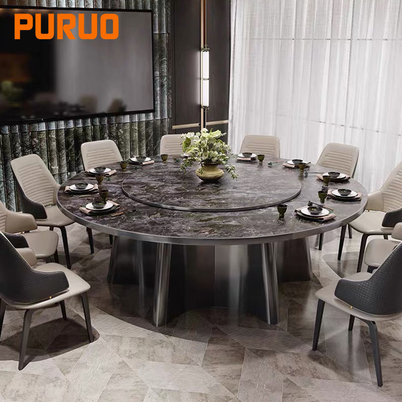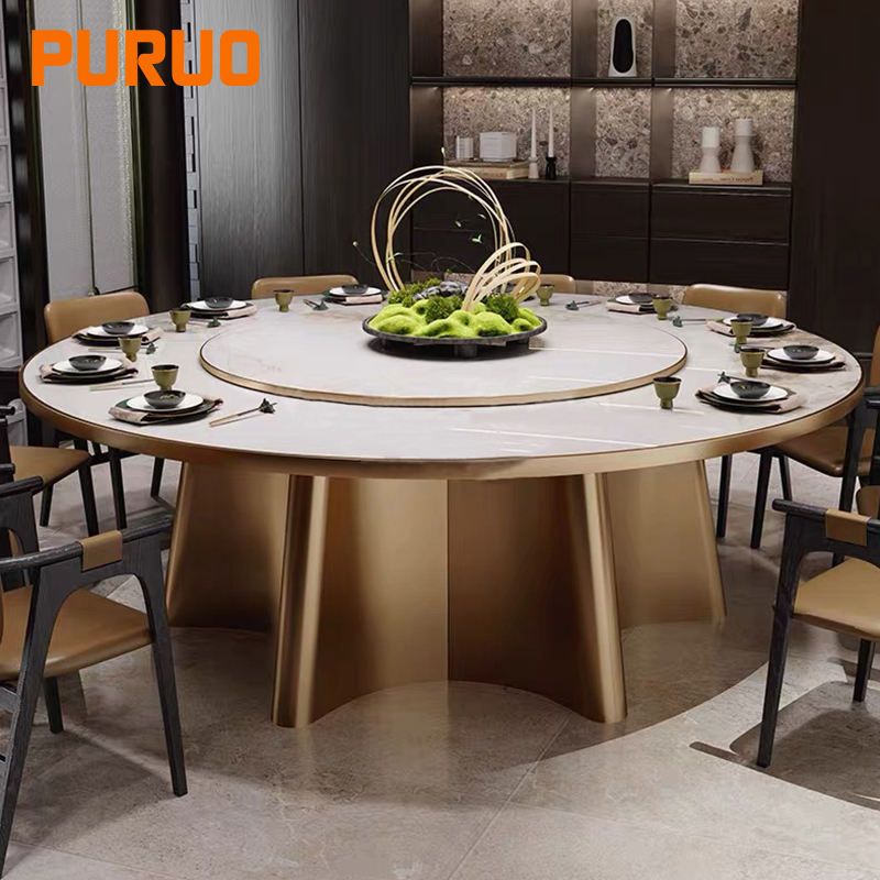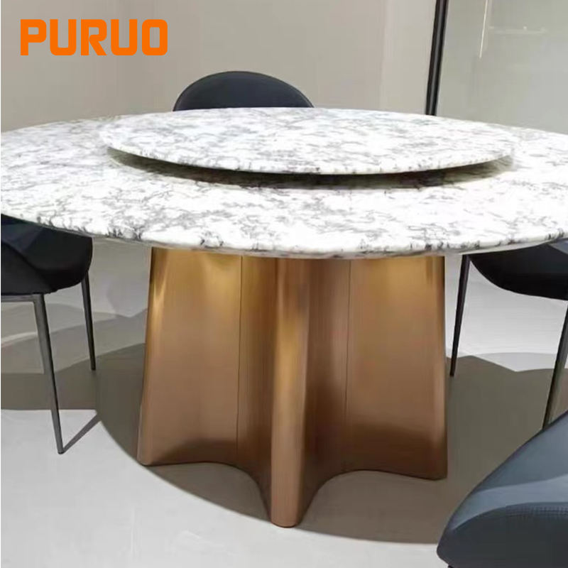 Italian Minimalist Gold Base Luxury Round Table Rock Board Dining Table and Chair Combination Sintered Stone Round Table