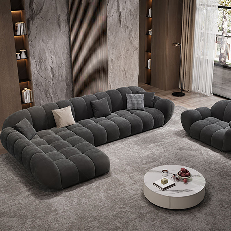 Divano Angolare in Tessuto Smerigliato Stile Minimalista Italiano a Petalo Retrò per Soggiorno Moderno Semplice