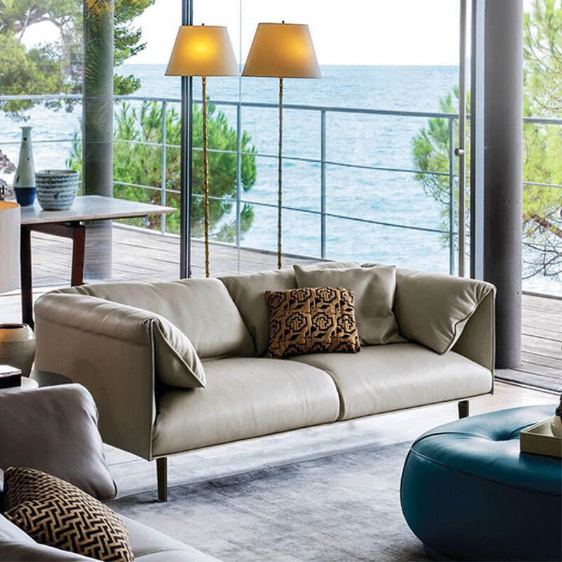 Italian Minimalist Three-person Leather Sofa Modern Simple Living Room Bedroom in the First Layer of Cowhide Sofa Combination