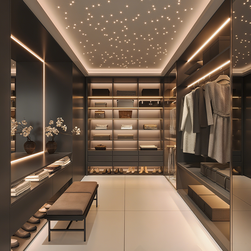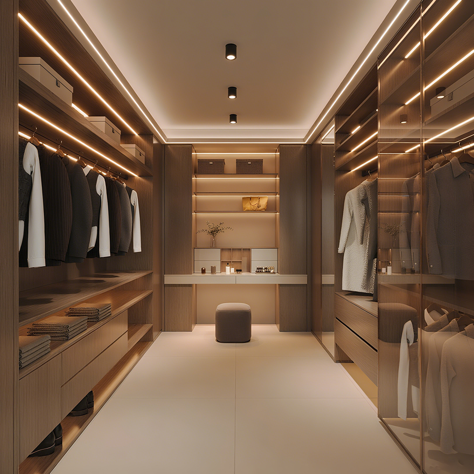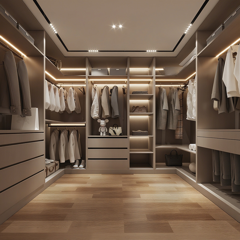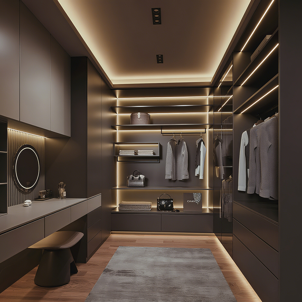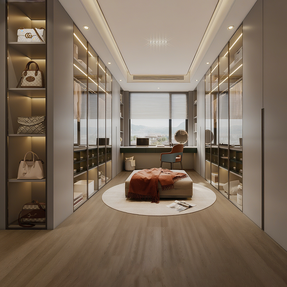 Cabina Armadio Minimalista Stile Italiano con Ante in Vetro Tavolo da Toletta Specchiera e Mobili per Guardaroba Eleganti