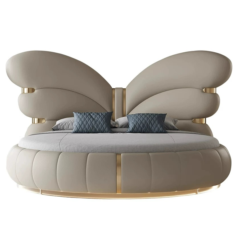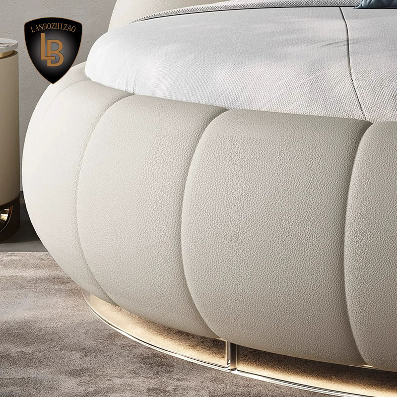 Lanbo Letto rotondo imbottito LB-78991, pelle genuina, struttura MDF/rovere, King/Queen/misure speciali, garanzia 1 anno
