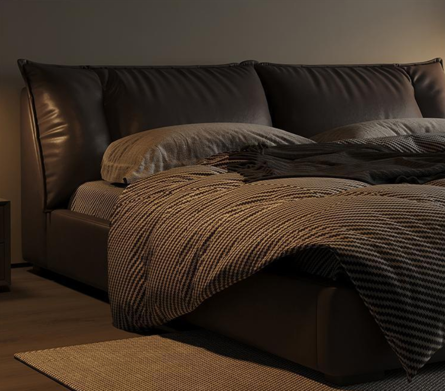 Italian Modern Minimalist Cowhide Tatami Bed Headboard 1.8*2m Large Double Bed Genuine Leather Wooden Frame for Master Bedroom