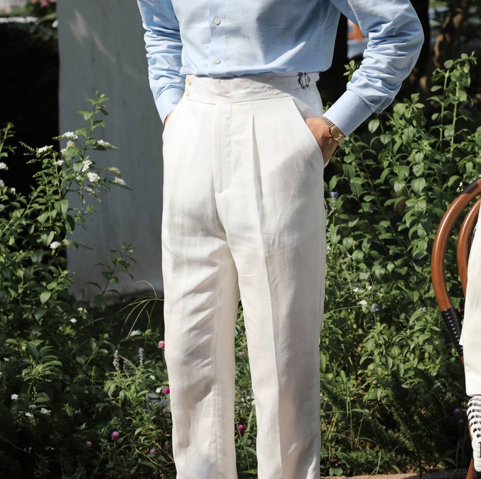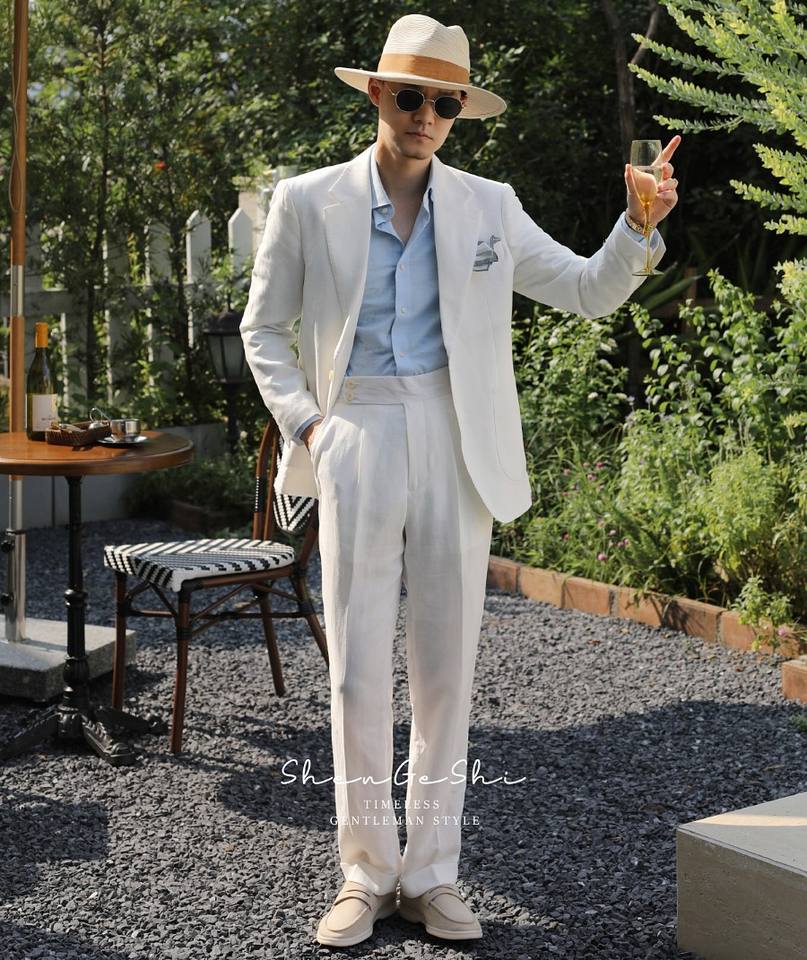 Stile italiano vecchio stile bianco estate traspirante Casual in lino 100% mezza foderato monopetto 2 pezzi abito da uomo
