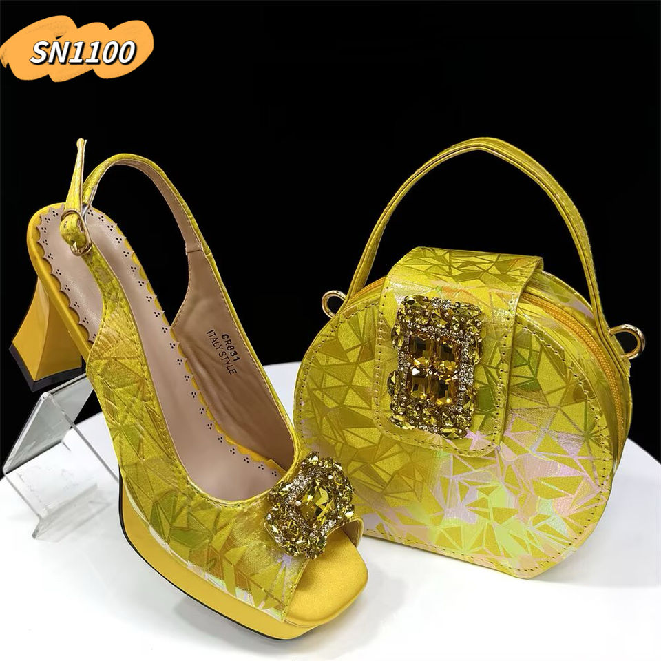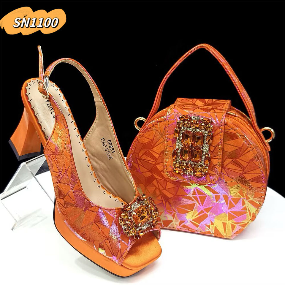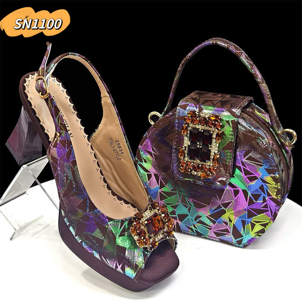 Italian Party purple Shoes Matching Bag With Rhinestones 8.5CM Luxury Women Shoes Low Heels for Wedding
