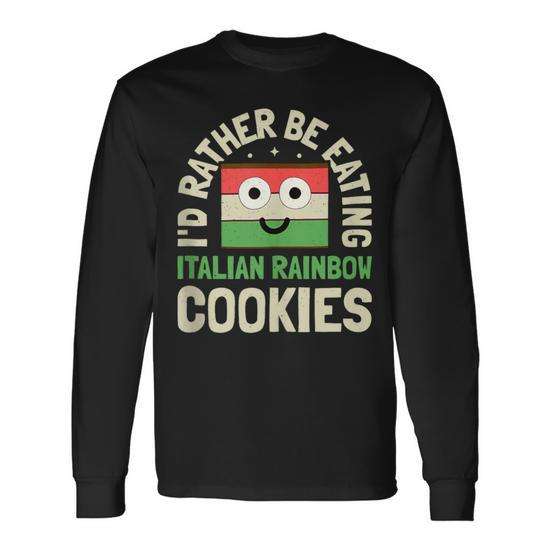 T-shirt a maniche lunghe con stampa Rainbow Cookie in italiano, design I'd Rather Be Eating