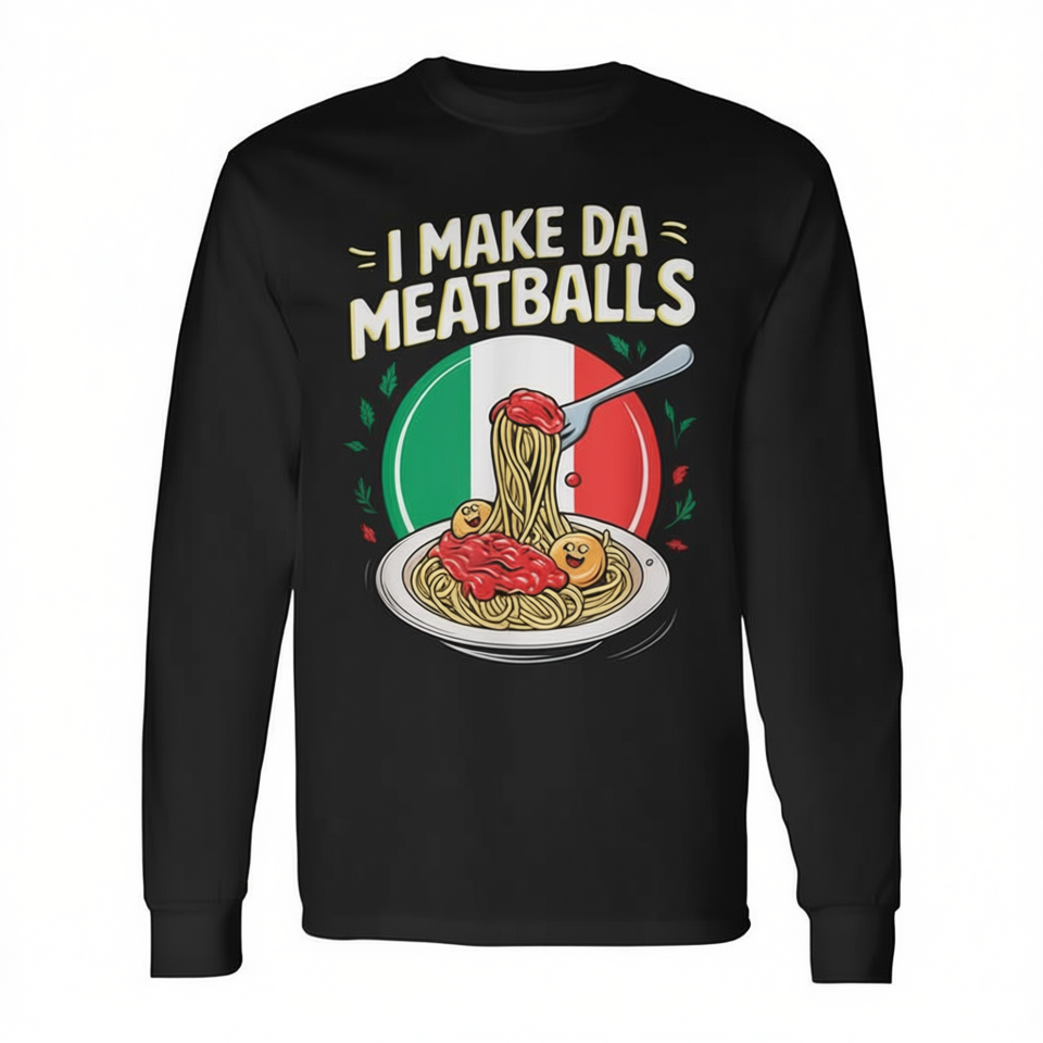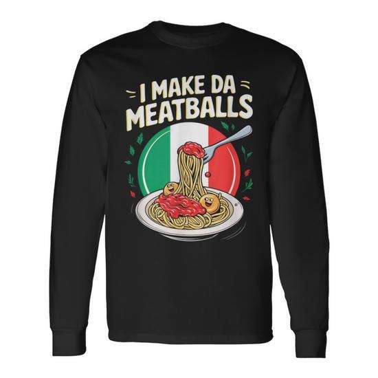 T-Shirt a Maniche Lunghe Ispirata al Cibo con Scritta 'I Make Da Meatballs' per Amanti del Cibo e Appassionati di Pasta