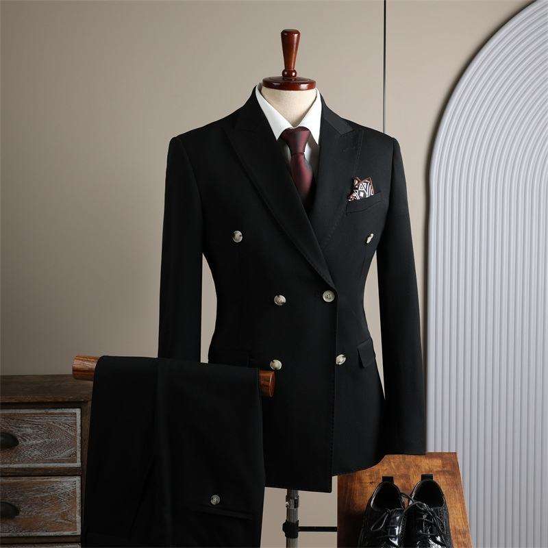 Abito italiano da uomo elegante per sposo, tute da uomo di alta qualità, completo da matrimonio a tre pezzi con doppio petto e taglio piatto, per uomini