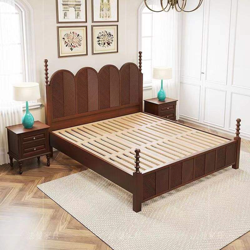 Italian Vintage Solid Wood Double Bed Light Luxury Modern Master Bedroom Bed Blinds Smoked Anna Style for Wedding Princess Bed