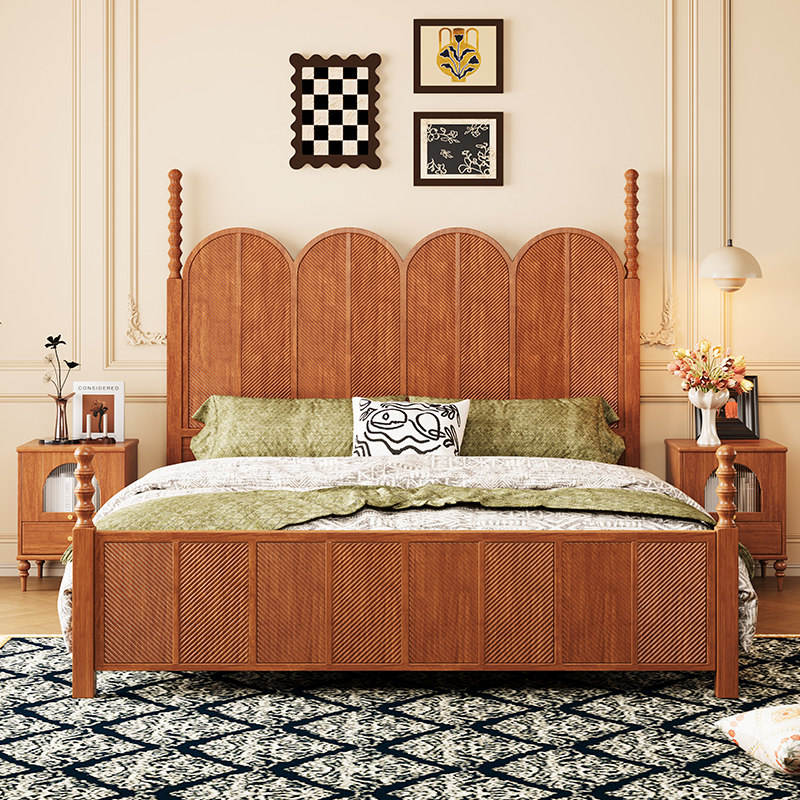 Italian Vintage Solid Wood Double Bed Light Luxury Modern Master Bedroom Bed Blinds Smoked Anna Style for Wedding Princess Bed