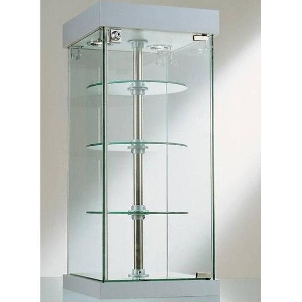 Italian-made Counter Display Case 31x31x74 cm Tempered Glass with Revolving Shelves Cube Pattern Halogen Spotlights Mirror Base