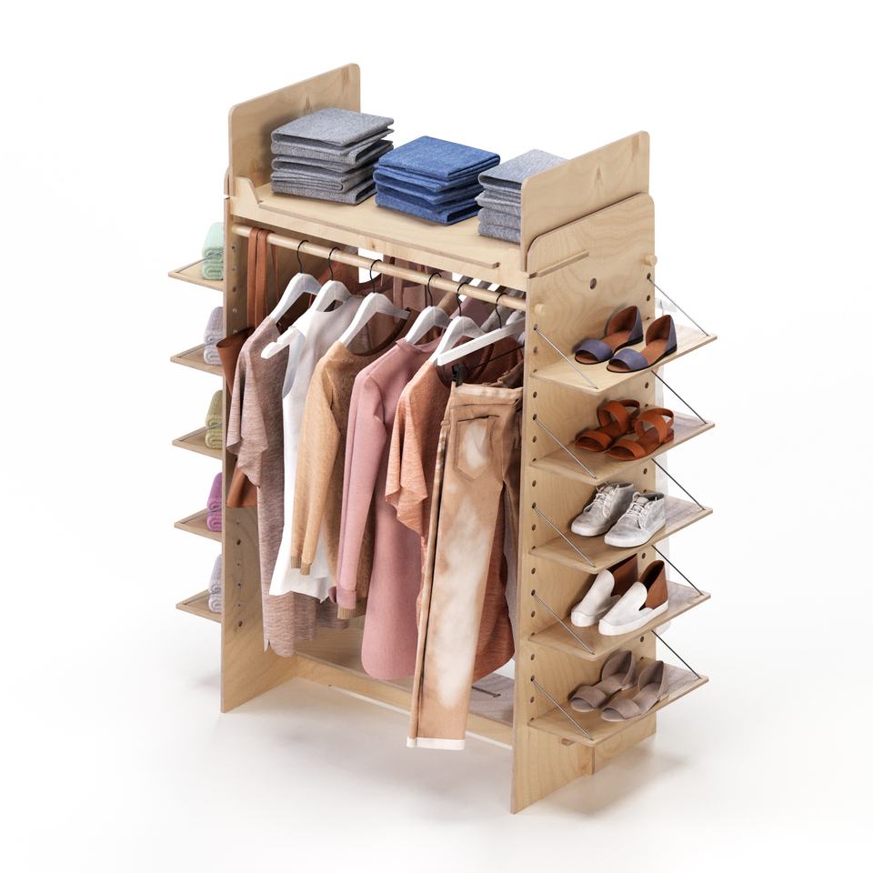 Italian shoes wood storage bench shelves stand hanging bar clothing rack for boutique