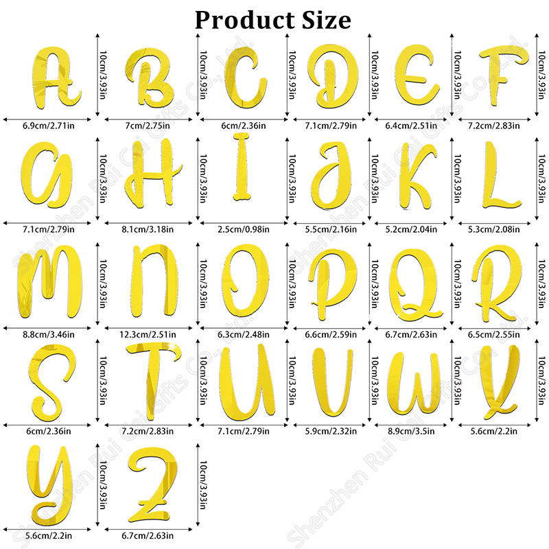 Lettere corsivo inglesi 3D alfabeto specchio adesivo da parete UV stampato acrilico decorazione per la casa personaggi d'amore