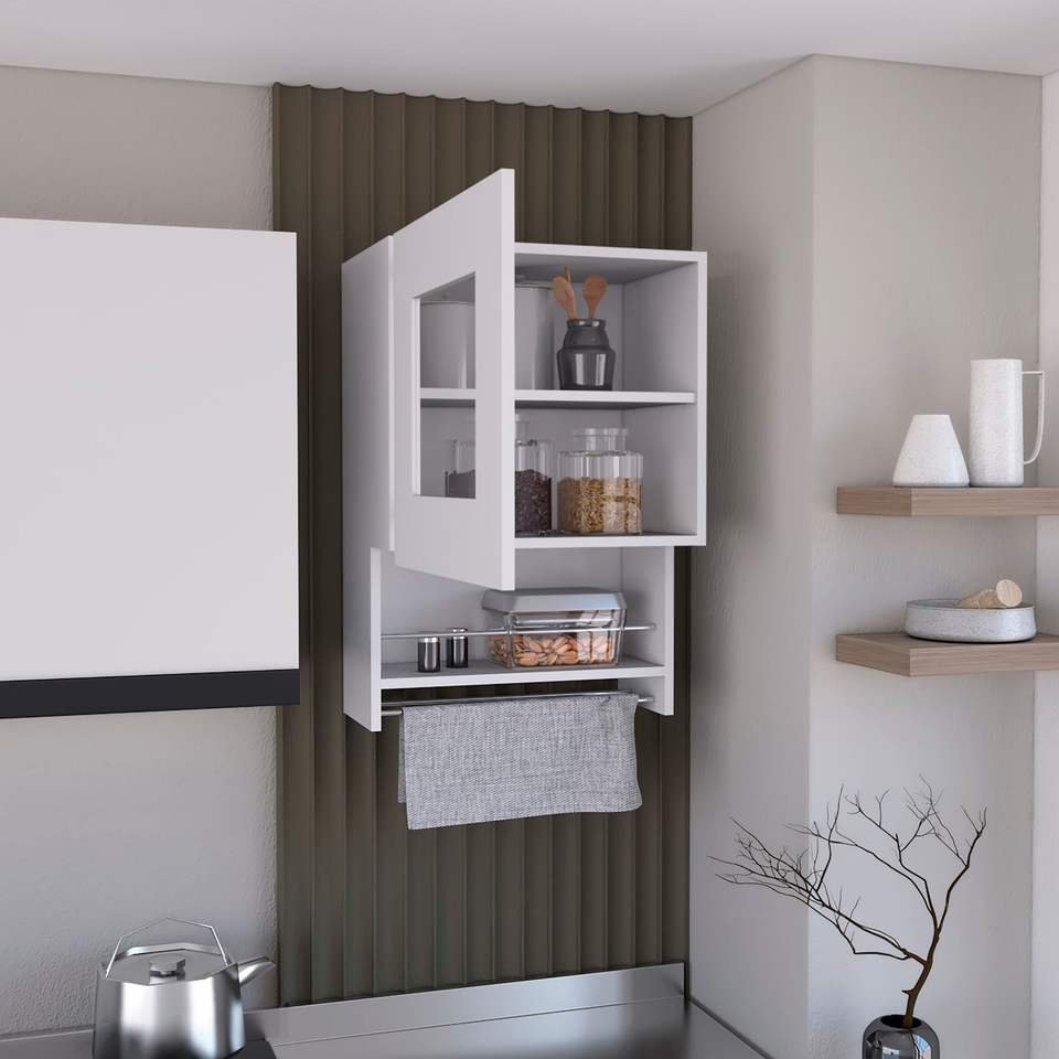 Mobile da cucina a parete Ithaca bianco con portasciugamani e portaspezie integrati