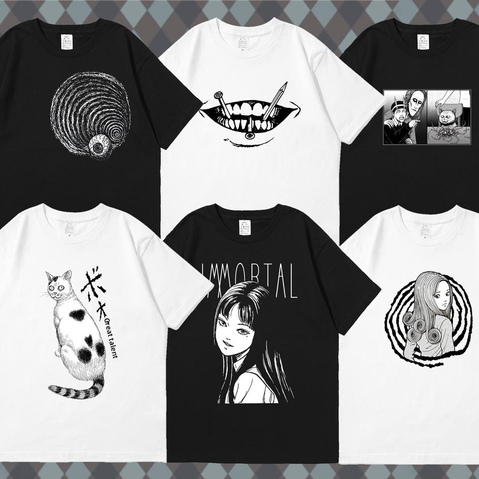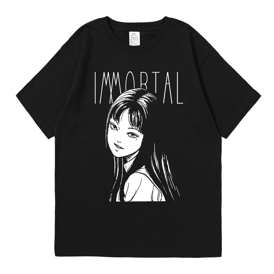T-shirt vintage giapponese horror retrò stampata con logo Ito Tomie Shuangyi Run'er - Manica corta, collo tondo, opaca, in puro cotone