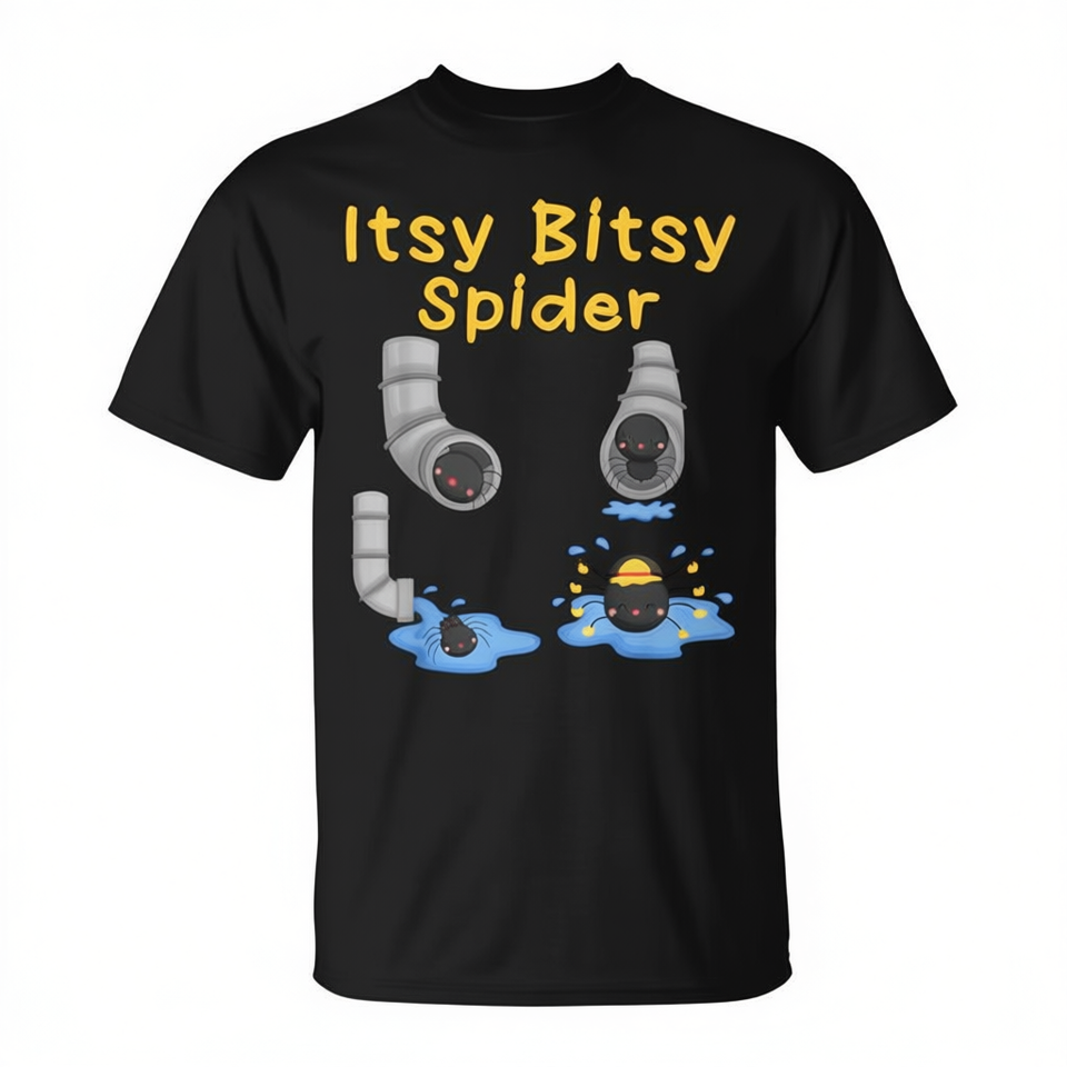 T-shirt Itsy Bitsy Spider per bambini, unisex, manica corta, girocollo, stampa digitale, design con rime per bambini