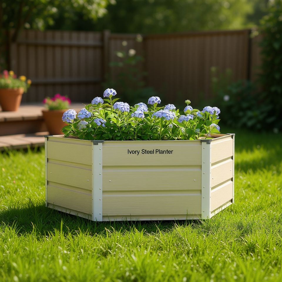 Fioriera in Acciaio Avorio 50.79 X 50.79 X 17.72 Pollici, Vaso Quadrato da Giardino per Esterni, Design Moderno e Minimalista
