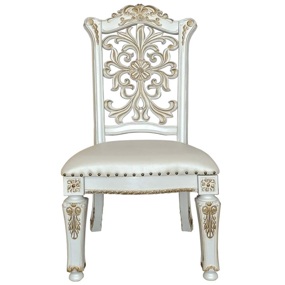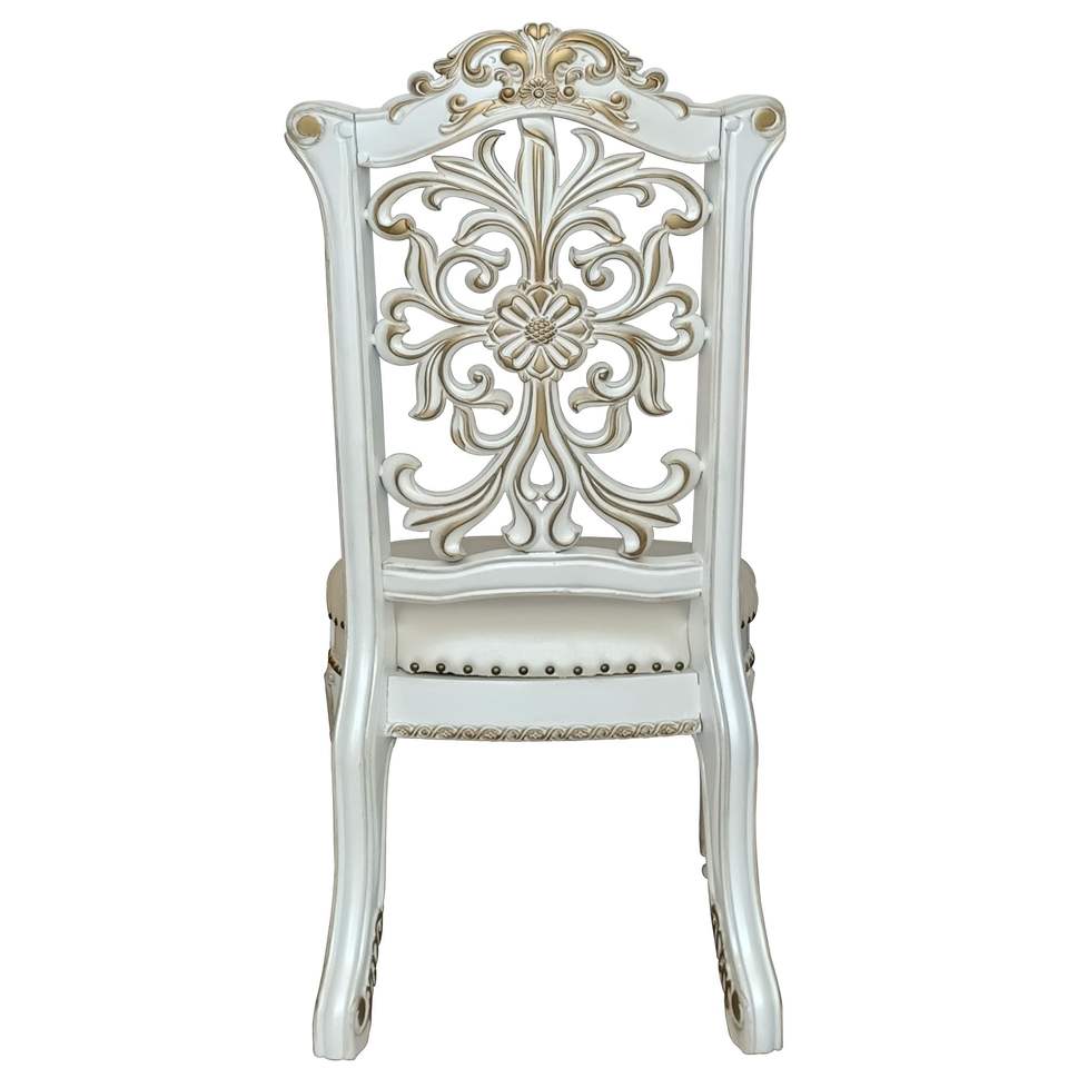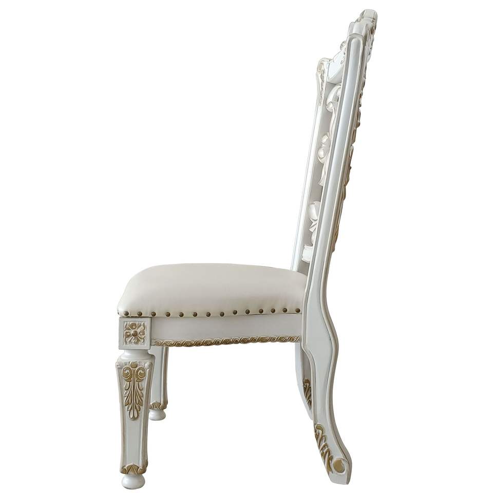 Set di 2 Sedie da Pranzo in Avorio e Perle Antiche con Finitura a Chiodi