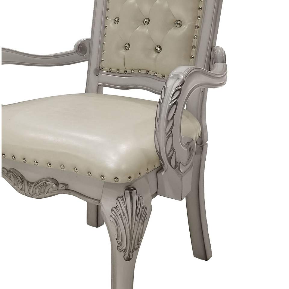 Set di 2 Eleganti Sedie da Pranzo Imbottite in Avorio e Bianco Osso