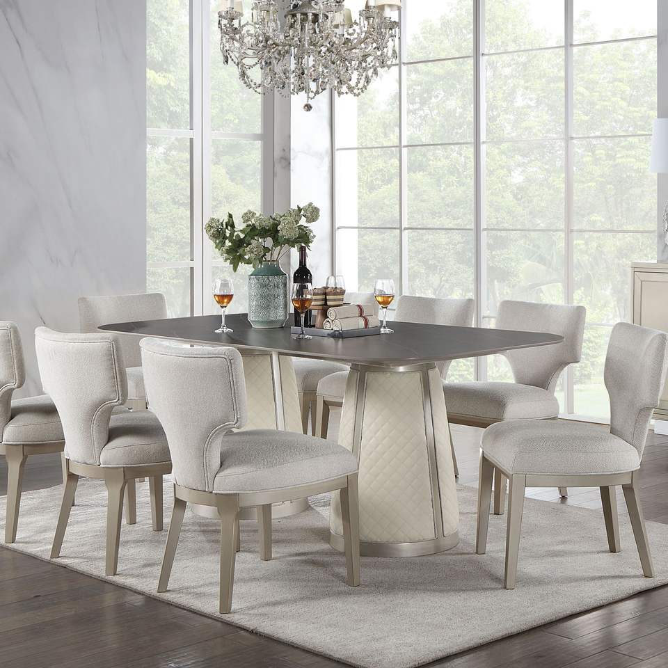 Set di 2 Sedie da Pranzo in Avorio e Champagne con Seduta Imbottita