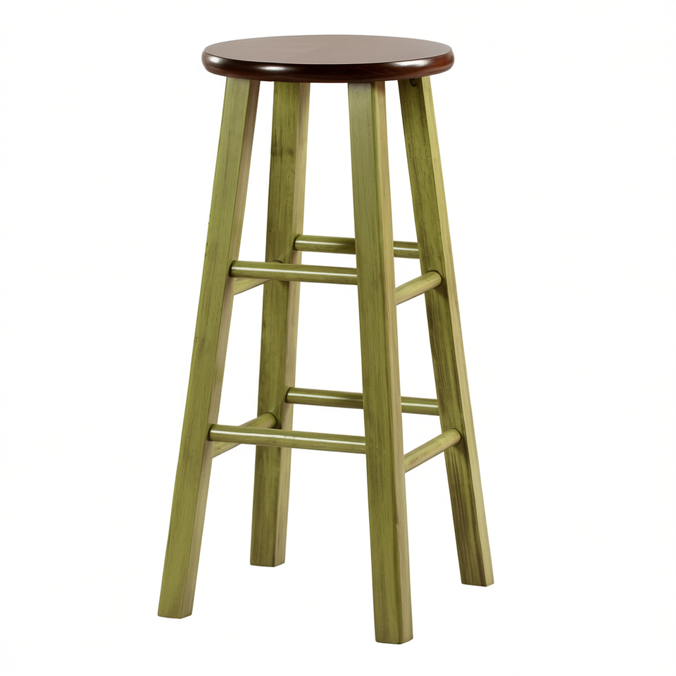 Sgabello da Bar Ivy 29 Pollici con Base in Legno Verde Noce, Design Rustico Moderno, Stabile, Arredamento per Bar Domestico