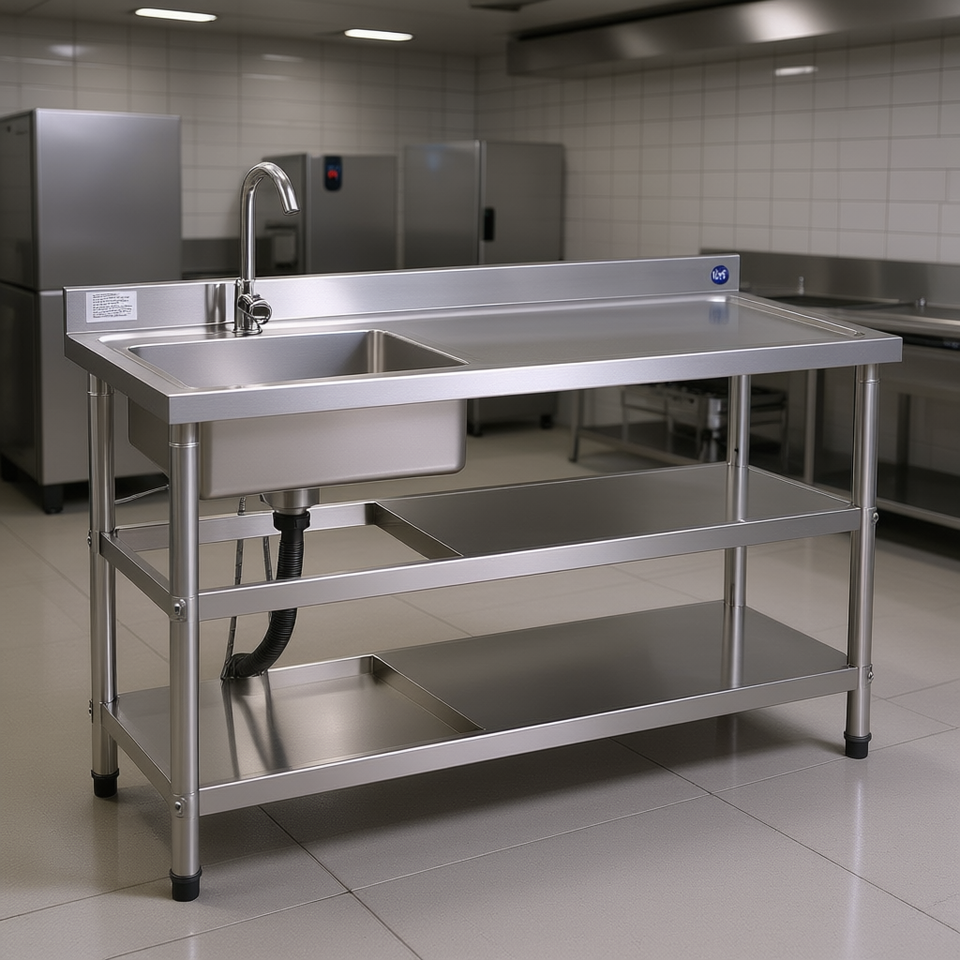 Lavello Commerciale Ivy in Acciaio Inossidabile a Vasca Singola 47.2 x 19.7 Pollici con Sgocciolatoio Destro, Doppio Ripiano e Gambe Regolabili