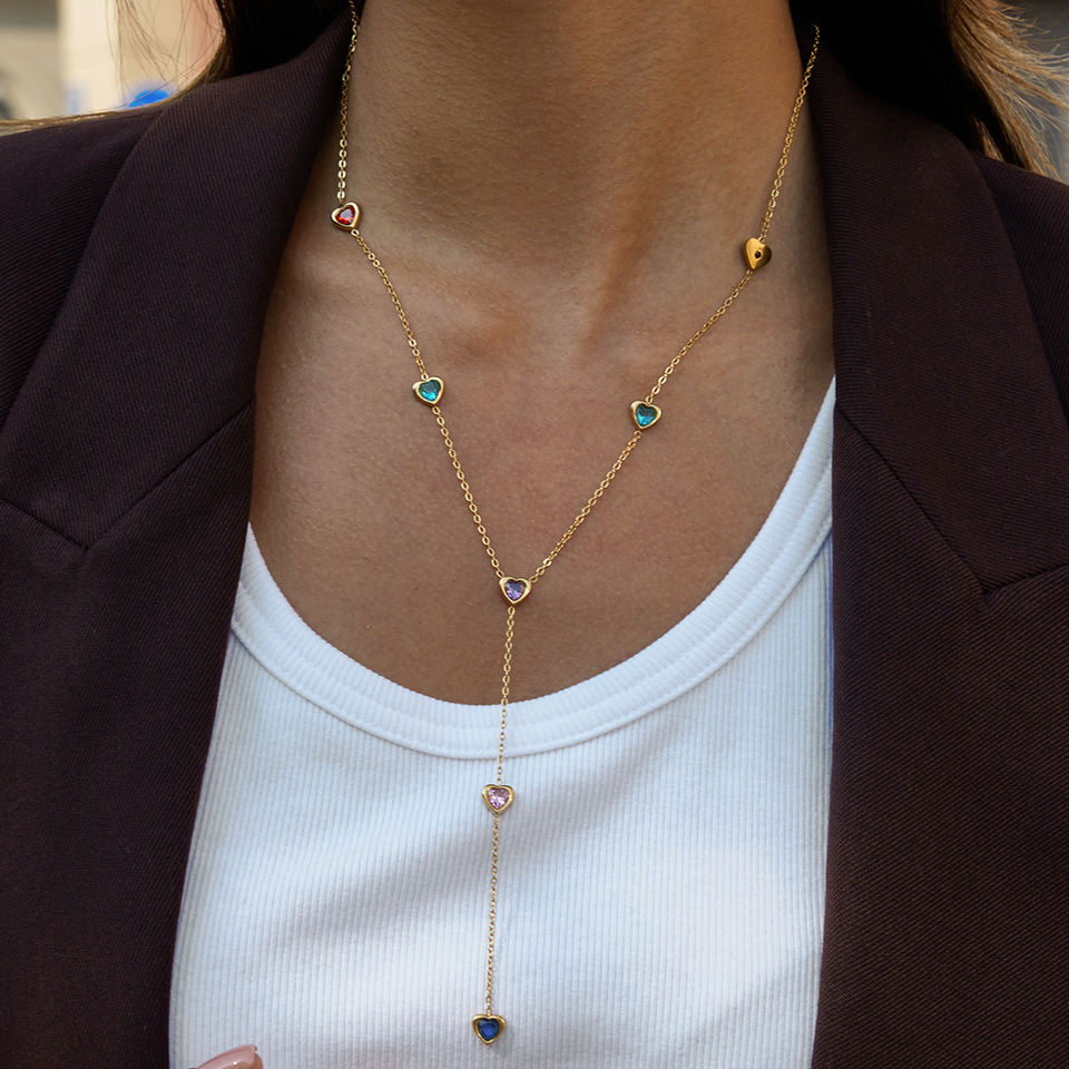 Collana a Y J&D in Acciaio Inossidabile Placcato Oro 16K con Cuore Classico Moderno e Zirconi Colorati
