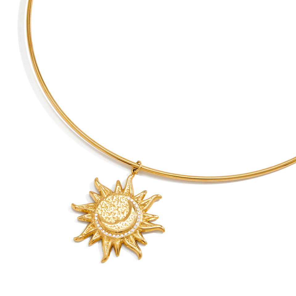 J&D 18K PVD Gold Plate Stainless Steel Necklace Classic White Rhinestone Sun and Moon Pendant Necklace