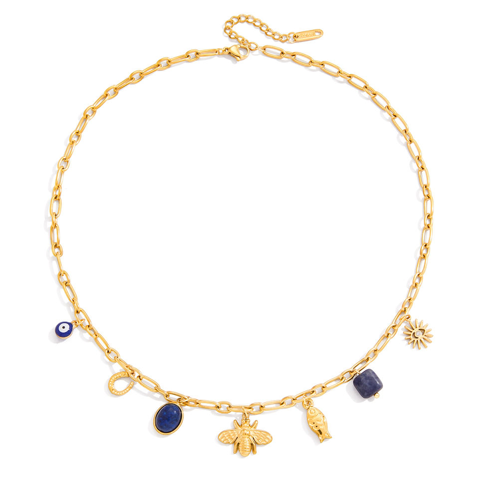 J & D autunno inverno impermeabile in acciaio inossidabile 18K PVD placcato in oro a forma di U Lapiz collana di ape occhio di pesce