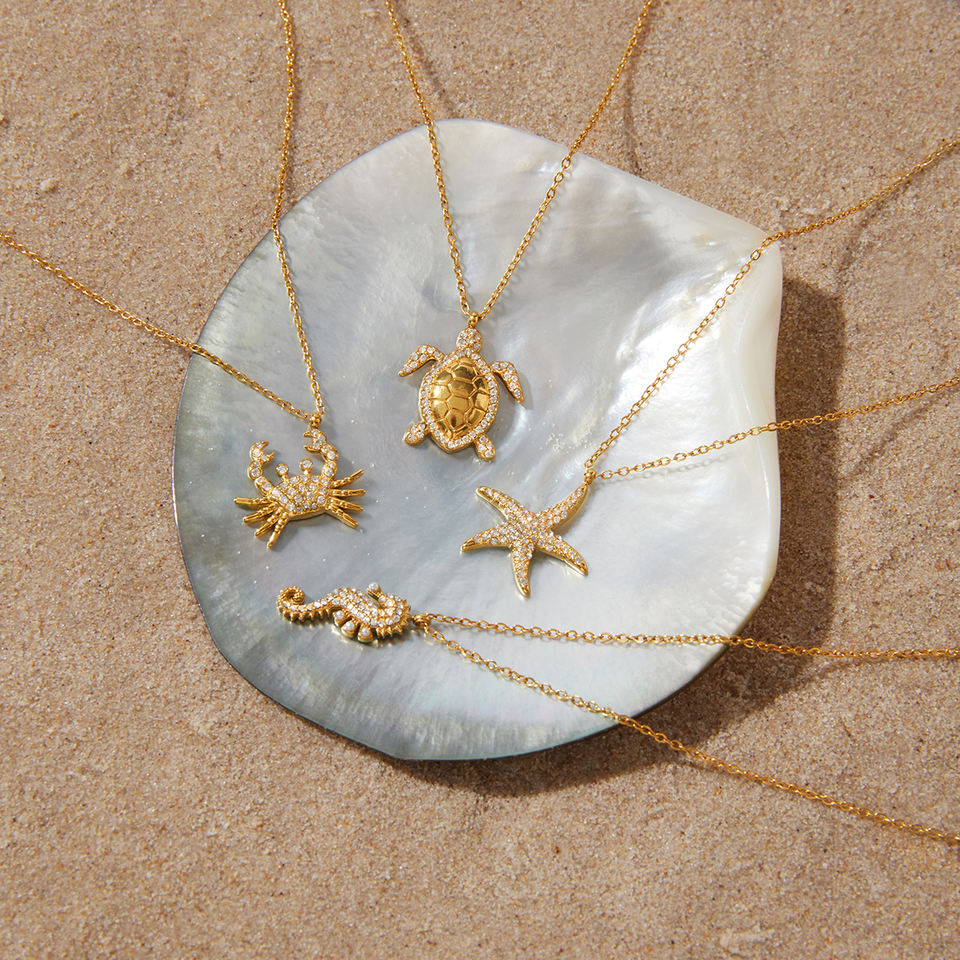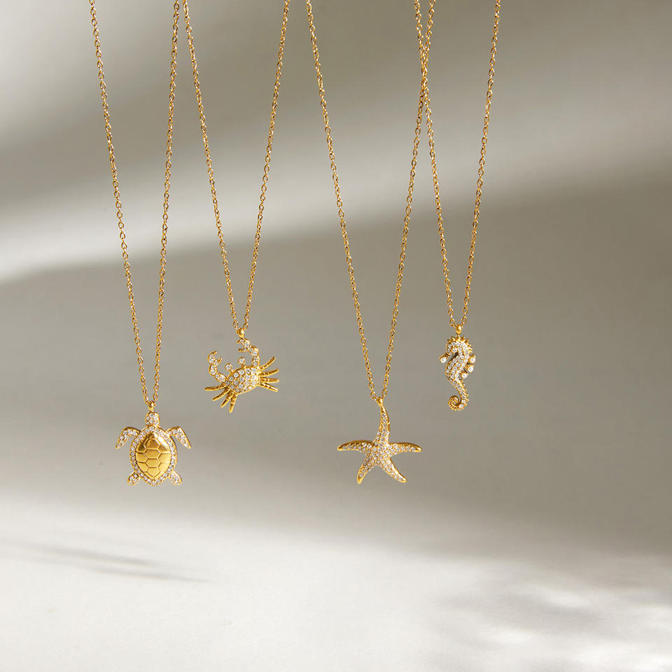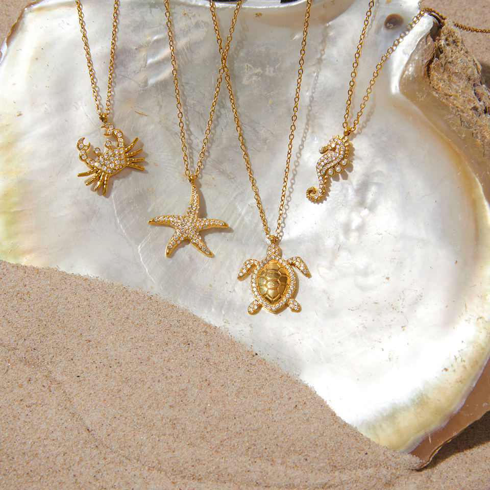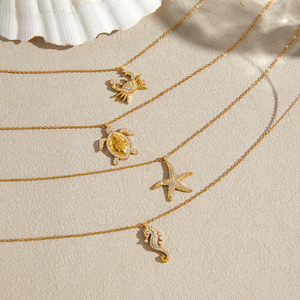 Collana J&D Ocean Vacation Animal in acciaio inossidabile placcato oro 18K con strass, ciondolo estivo a forma di stella marina, granchio, tartaruga e cavalluccio marino